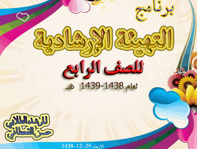 نشاط المصادر لتوثيق اعمال المدرسة التهيئة الارشادية لطلاب الصف الرابع تنفيذ البرنامج المرشد الطلابي حسن القحطاني يوم الاربعاء الموافق 29 12 1438