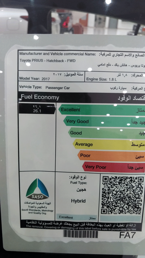 100 ألف ريال غرامة لمخالفي عرض السيارات موديل 2015 بدون بطاقة استهلاك الوقود المربع نت